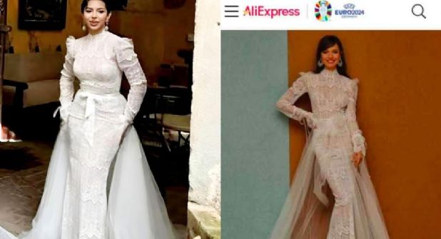 Posterior, seguidores de la pareja comenzaron a viralizar fotografías del vestido con el que caminó la intérprete de 'Que agonía' al altar, ofertado en AliExpress.