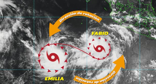 Explicaron que se está presentando el Efecto Fujiwhara, debido a la cercanía entre las tormentas tropicales Fabio y Emilia.