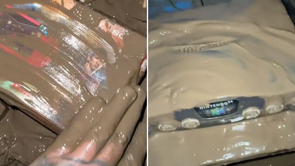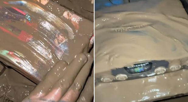 El usuario xzibitroger17 mostró también como muchos videojuegos portátiles resultaron con daños irreparables, con una espesa capa de lodo encima.