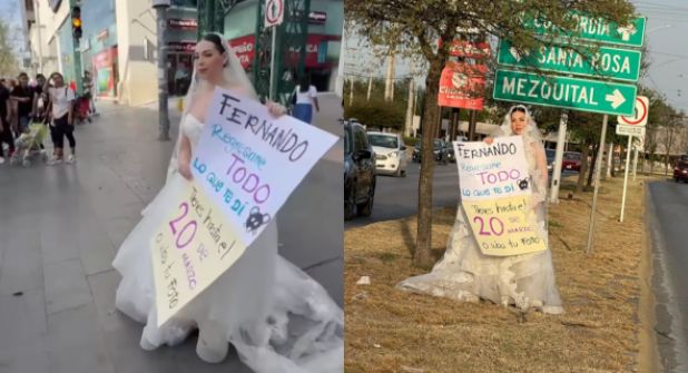 Monterrey.- Una joven vestida de novia decidió salir a la calle para alzar la voz y contar la estafa de la que fue presa al confiar en un hombre que se hizo pasar por wedding planner (organizador de bodas) para robarle más de 200 mil pesos. Ahora la boda de la joven está a tres meses de realizarse, pero ella no tiene nada para llevarla a cabo.