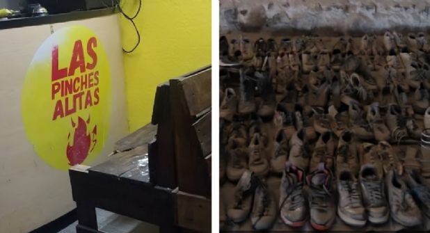 En su cuenta de Facebook el restaurante denominado "Las Pinches Alitas Oficial", publicó una fotografía donde aparecen los zapatos que fueron encontrados por un colectivo de búsqueda en el mencionado "campo de exterminio".