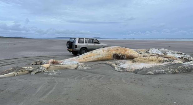 Cardiff. – El cadáver de un animal de grandes proporciones fue hallado recientemente en una playa de Gales, lo que dejó atónitos a los visitantes del lugar.