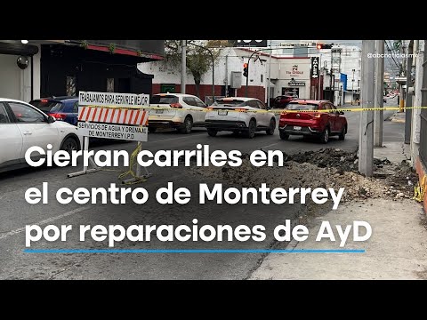 Cierran carriles en el centro de Monterrey por reparaciones de Agua y Drenaje