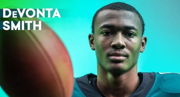 El receptor Devonta Smith, ganador del Hesiman, también ya se estrenó con una recepción a las diagonales con Filadelfia.