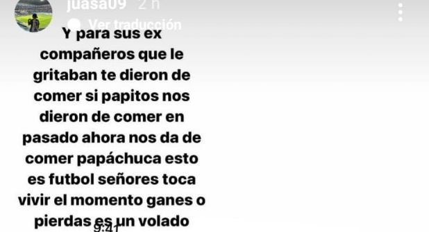 "Y para sus ex compañeros que le gritaban te dieron de comer si papitos nos dieron de comer en pasado ahora nos da de comer papáchuca esto es futbol señores toca vivir el momento ganes o pierdas es un volado", público horas más tarde.