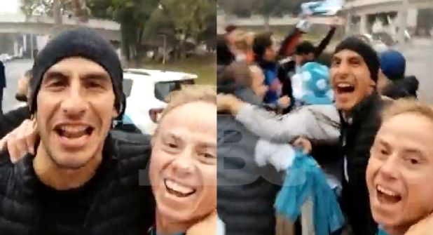 El también mundialista con Argentina en Rusia 2018 se dio cita en la rotonda de Calzada Del Valle y Calzada San Pedro, para reunirse con sus compatriotas, donde fue captado por aficionados, festejando como un hincha más.