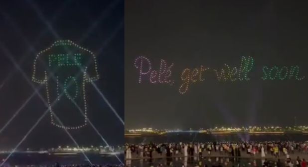 Una coreografía con unos 150 drones rindió homenaje en el cielo de Doha al exfutbolista brasileño Pelé, que se encuentra hospitalizado desde hace varios días.