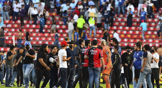 Personal de seguridad permitió el ingreso a la cancha de aficionados, pero los rijosos aprovecharon para llevar la violencia al campo de juego.
