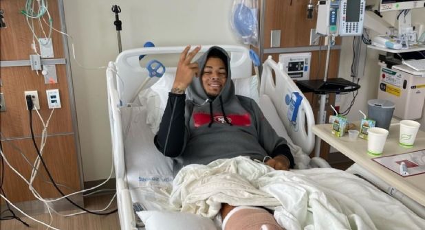 Después de la operación, Trey publicó en su cuenta de Twitter una fotografía desde el hospital en la que se le ve sonriente y recostado con la pierna derecha vendada.