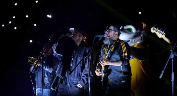 La banda regiomontana se presentó en el medio tiempo del partido entre felinos y Pachuca, brindando un momento musical a los presentes en el inmueble.