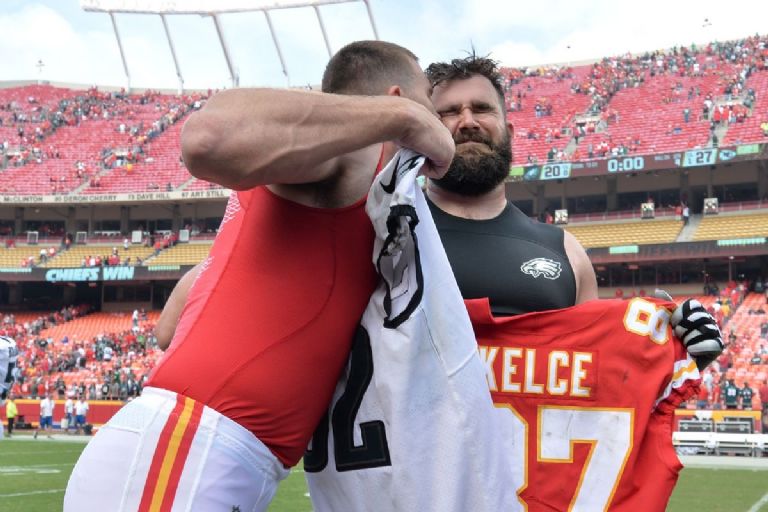 Jason, de 35 años, es un par de años mayor que Travis y juega como centro con las Águilas de Filadelfia, mientras que su hermano es el ala cerrada de los Jefes de Kansas City.
