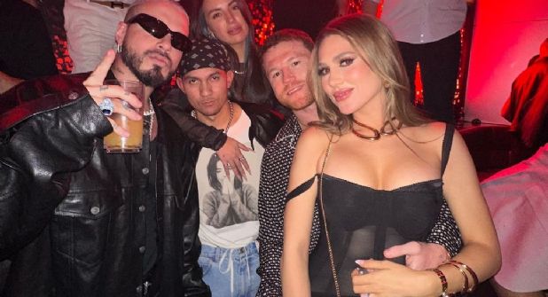 En las imágenes se puede observar a J Balvin, Tainy, Luis Conriquez y Santa Fe Klan, siendo este último quien acompañó hasta al ring de la pelea a ‘Canelo’, mientras rapeaba el tema ‘Por Mi México’.