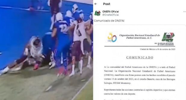 Monterrey.- Después de que durante el fin de semana se hiciera viral el clip de la lesión provocada de manera intencional de un jugador de Burros Blancos del Instituto Politécnico Nacional (IPN) hacia un elemento de los Borregos del Tecnológico de Monterrey, la Organización Nacional Estudiantil de Fútbol Americano (ONEFA) lanzó un comunicado al respecto de una posible sanción.