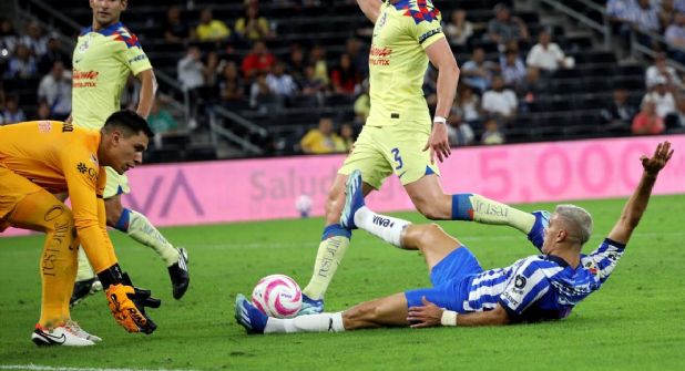 Rayados tardó en sacudirse los goles y el partido cayó en un letargo por el juego del América, que se rompió con la lesión de Brian Rodríguez provocada en una caida de Jesús Gallardo.