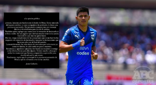 El futbolista de Rayados compartió un mensaje a través de su cuenta de Instagram, donde señaló que no tuvo intención de lesionar al uruguayo y mencionó que ha intentado comunicarse con Brian vía telefónica y mensaje directo para desearle pronta recuperación.