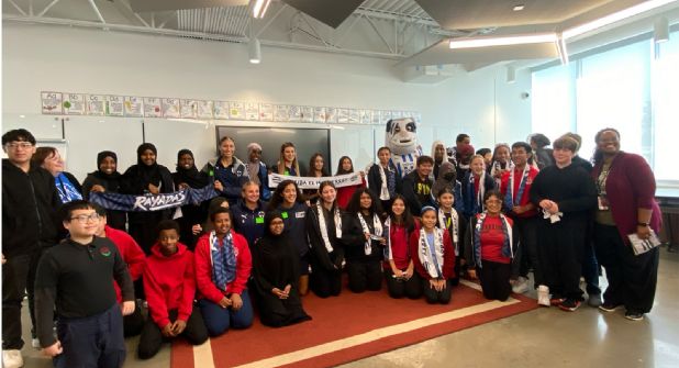 Las futbolistas Karol Bernal, Carlee Giammona, Myra Delgadillo y Diana García fueron las representantes del club en la visita al centro educativo, que está ubicado en Kansas City, Misuri.