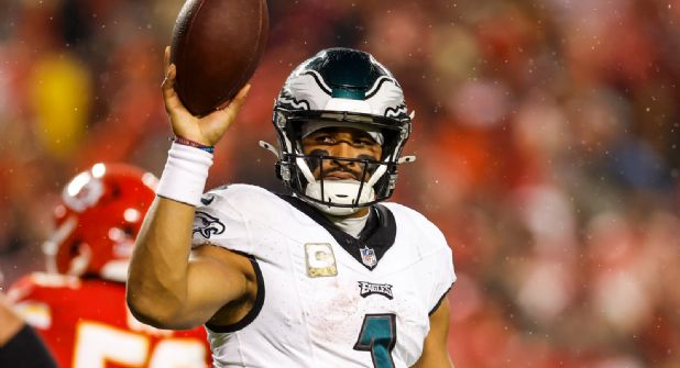 Jalen Hurts, 'quarterback' de Philadelphia lució con dos anotaciones por tierra. Fue capturado en cinco ocasiones e interceptado una vez.