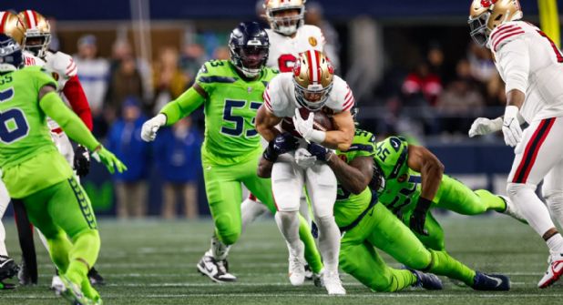 Los californianos tuvieron un comienzo inmejorable en Seattle y ya mandaban 24-3 al descanso, luciendo su poderío por tierra. McCaffrey anotó dos touchdowns y Samuel firmó el tercero de una sobresaliente primera mitad, completada por un gol de campo de Jake Moody.
