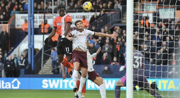 En el último segundo de la primera parte, Ross Barkley se fue de dos jugadores en el centro del campo, arriesgando la pelota, y permitió la transición de los 'Hatters' por una banda. El esférico le llegó a Andros Townsend, un hombre que en su etapa en el Crystal Palace ya dio algún susto al City, y colocó un centro al segundo palo que desnudó el momento de Ruben Dias. Elijah Adebayo le ganó con facilidad por arriba e hizo el 1-0.