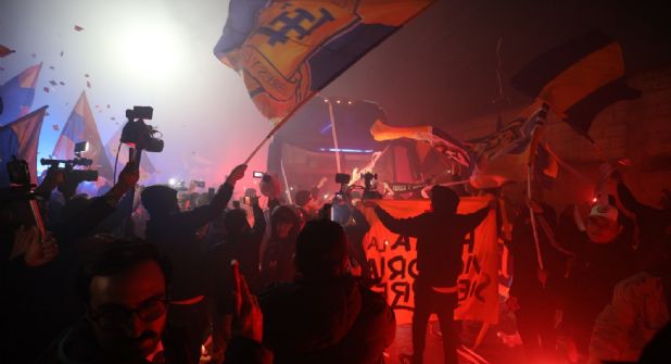 Los preparativos arrancaron cerca de las 18:30 horas, donde los ‘Libres y Lokos’, grupo de animación del equipo, colgó mantas y pusieron banderas.