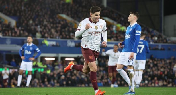 La séptima victoria seguida en Goodison Park del Manchester City, todavía sin el noruego Erling Haaland ni el belga Kevin de Bruyne, se fraguó tras el intermedio. Antes ya pudo marcar. Muchas veces. Pero Pickford lo evitó. Ya a los cuatro minutos salvó una doble ocasión para los 'citizens'. Primero sacó con el pie izquierdo un tiro de Julián Álvarez tras recibir el balón de Jack Grealish. A continuación, el meta local estuvo atento y también frustró el disparo posterior de Phil Foden.