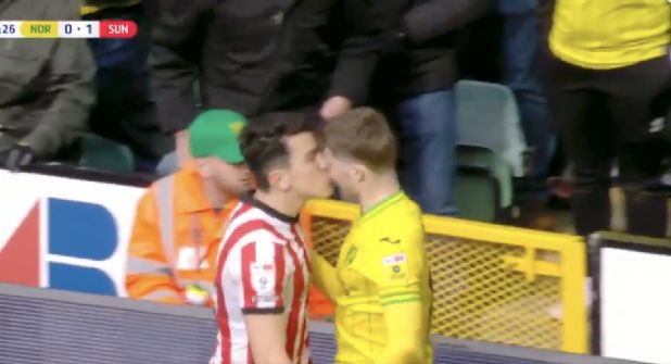 Ambos jugadores comenzaron a discutir y fue en ese momento que Luke O’Nien intentó provocar a su compañero de profesión besándolo en la boca, en una acción que no fue bien recibida por el elemento del Norwich y sus compañeros.