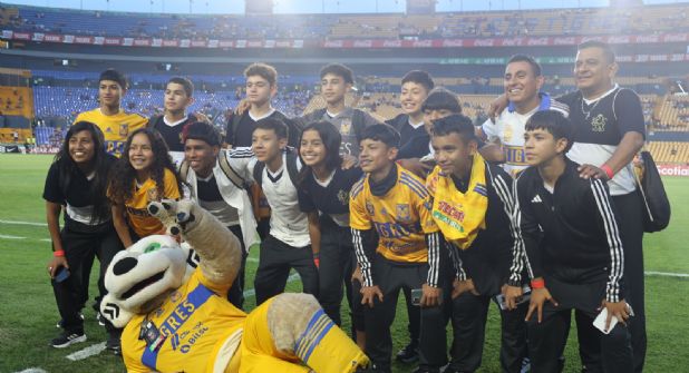 San Nicolás de los Garza.- Los integrantes de la Selección de Nuevo León pertenecientes a los Centros Comunitarios del estado y que lograron el título del Torneo Desafío Mundial Madrid 2023 fueron parte de los invitados especiales para el duelo entre Tigres y Motagua.