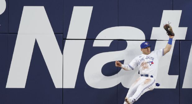 El dominicano Santiago Espinal, también por bases por bolas, sumó la segunda del episodio y Danny Jansen colocó la tercera fallando en jugada de selección al campocorto.
