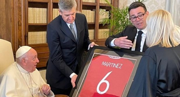 Burnham, acompañado de otras personalidades de la ciudad inglesa, visitó al Papa en el Vaticano para tratar el problema del cambio climático y otros temas globales, pero aprovechó para llevarle un regalo futbolero al sumo pontífice, una camiseta enmarcada de Lisandro.