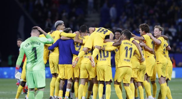 Barcelona.- El Barcelona se proclamó campeón de LaLiga tras vencer al Espanyol en el RCDE Stadium en un derbi que se fisuró con el gol de Robert Lewandowski en el minuto 11 y que se resquebrajó con el 0-3 de la primera mitad (Alejandro Balde y otro del polaco) y con la diana de Jules Koundé tras el descanso.