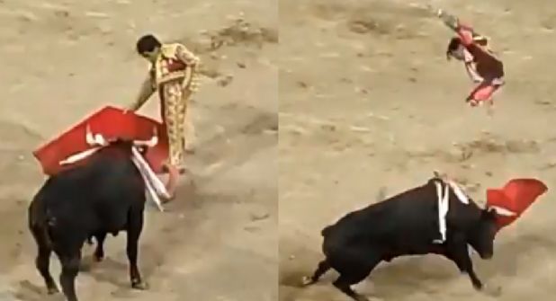 El ataque fue violento, y dejó tirado en el ruedo al matador, quien primero salió volando un par de metros para después recibir una segunda cornada del animal.
