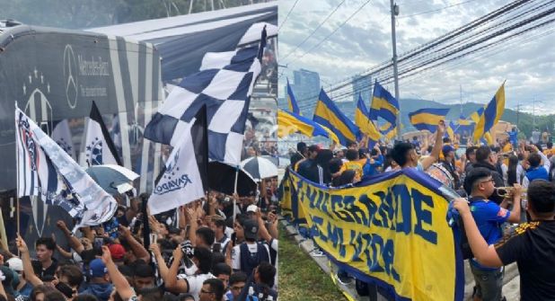 Monterrey.- La fiesta del Clásico Regio 131 comenzó un par de horas antes del silbatazo inicial, las aficiones de Rayados y Tigres cobijando a sus jugadores previo a su llegada al estadio.
