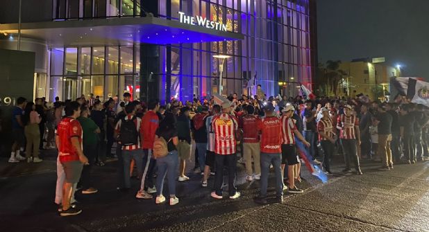 Fue desde antes de las 20:00 horas del sábado que alrededor de 100 aficionados al equipo tapatío se dieron cita para recibir al equipo en el lugar en el que pasarán la noche de cara al partido contra Tigres.