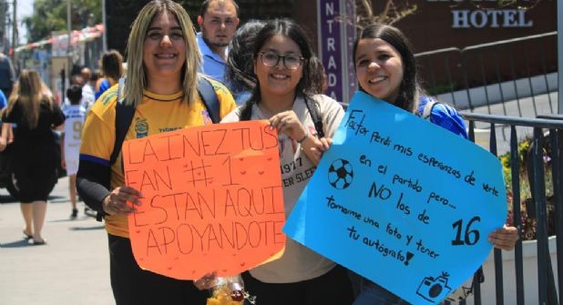 Si bien había un grupo de alrededor 15 seguidores auriazules que esperan la salida del plantel rumbo al Estadio Akron, hubo cerca de cinco fanáticas de Diego, que así lo dejaron saber con sus mensajes.