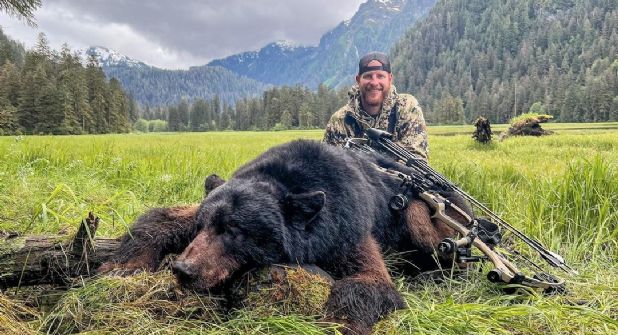 “A la lista de objetivos cumplidos. Tuve la oportunidad de observar y acechar a un oso negro en uno de mis lugares favoritos de la tierra, Alaska. Viaje increíble y un increíble animal”, fue el mensaje que agrego en las fotos con su arma y el enorme oso muerto a sus pies.