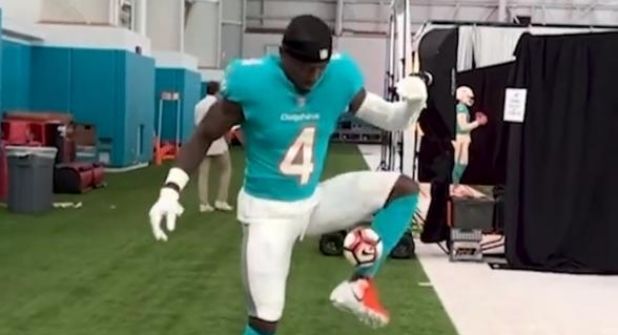 A los trucos con el balón se unieron el ala cerrada Eric Saubert, el esquinero Kader Kohou, el defensivo Jevon Holland, aunque quien robó atención en los ejercicios fue Jake Bailey, pateador de los Dolphins quien utilizó ambos pies, rodillas y cabeza para sumar 12 toques sin dejar caer el balón al césped.