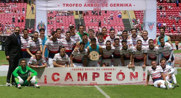 Guadalajara.- Las Chivas de Guadalajara del entrenador serbio-español Veljko Paunovic derrotaron por 4-2 en la serie de penaltis al Athletic Bilbao del fútbol español para ganar el trofeo Árbol de Gernika.