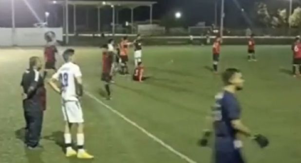 Los presentes voltearon hacia el área de las bancas, donde se perpetró la agresión y el juez hizo sonar su silbato para poner fin a las acciones, en tanto que el “narrador” dio el anunció de un asesinato a la orilla de la cancha.
