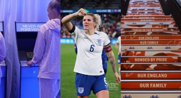 Hay una escalera en la que cada peldaño tiene un mensaje positivo, para recordarle a las futbolistas por que buscan ganar el Mundial de Australia y Nueva Zelanda.