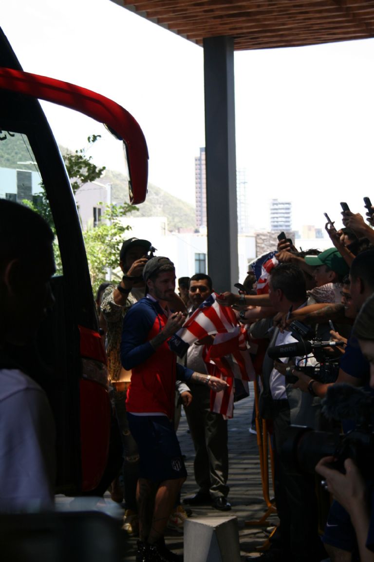 El avión que trasladó al equipo hasta el norte de México arribó aproximadamente a las 10:30 horas y después de cumplir con los tramites de migración correspondiente, el equipo abordó el autobús oficial que lo llevó hasta su hotel en la zona de Valle Oriente al sur de Monterrey.
