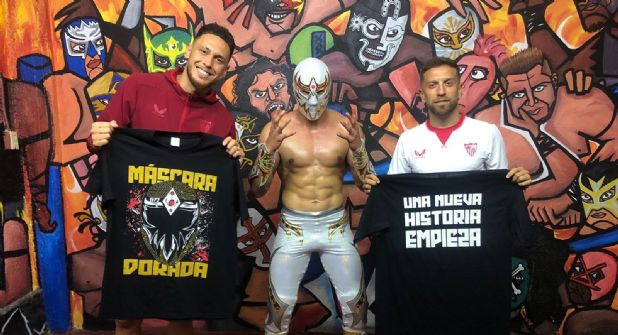 “El equipo de futbol @SevillaFC visitó las instalaciones de la Arena Coliseo de Guadalajara, donde realizaron un intercambio de playeras y máscaras con los luchadores del Consejo Mundial de Lucha Libre”, rescató la cuenta oficial del CMLL.