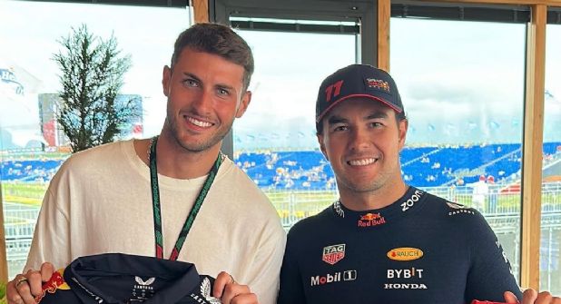 Países Bajos.- Dos de los máximos exponentes mexicanos en el deporte actualmente, el futbolista Santiago Giménez y el piloto Sergio Pérez, se reunieron e intercambiaron camisetas en el Gran Premio de Países Bajos de la Fórmula 1.