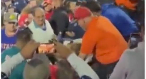 “Básicamente agarró a otro fanático. Comenzaron a pelear durante unos minutos, en un momento otro fan se acercó, le dio un puñetazo y el hombre simplemente se desvaneció, fue difícil de ver”, relató el identificado como Jeseph Kilmartin, quien grabó un video de lo sucedido.