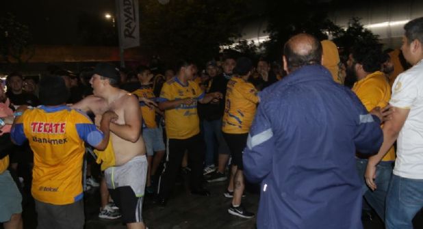 Un seguidor de los felinos y otro de los albiazules estuvieron a punto de iniciar una pelea frente a uno de los accesos al inmueble, pero el incidente fue detenido por elementos de seguridad en la zona, que se encargaron de someter al aficionado felino.