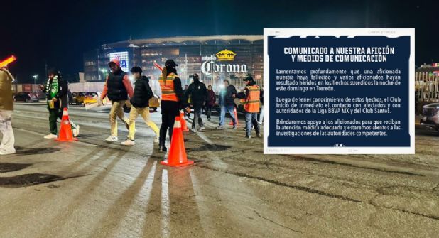 Por su parte el Club Santos Laguna señaló que estará en contacto con las autoridades para esclarecer lo ocurrido y dio a conocer que los supuestos responsables están detenidos.