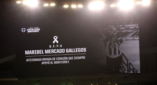 Monterrey.- El Club Rayados y su afición se unieron esta noche para homenajearle a Maribel Mercado, la aficionada que murió atropellada en Torreón.