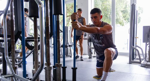 'Corcho' se dedicó a hacer trabajos específicos de acondicionamiento físico para fortalecer su espalda, igual que en el entrenamiento del martes.