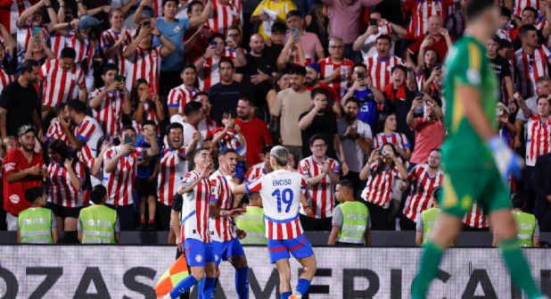 Después de un arranque con mucha velocidad y amagos de ambos lados, Martínez, al minuto 11, recogió en el aire una pelota con la que avanzó por la izquierda hacia el área contraria y superó, sin titubeos, al arquero paraguayo, Junior Fernández.