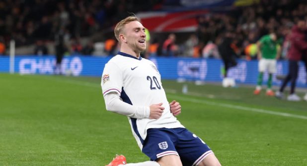 Los goles de Harry Kane, en un penalti forzado por Jude Bellingham, que repartió dos asistencias, Anthony Gordon, Conor Gallagher, Jarred Bowen y el debutante Taylor Harwood-Bellis aseguraron el ascenso de Inglaterra, que necesitaba replicar el resultado de Grecia contra Finlandia para acabar primera de grupo.