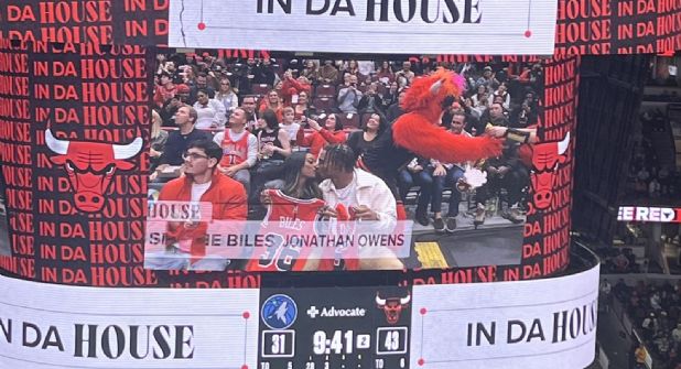 Biles, que ha ganado once medallas olímpicas a lo largo de su carrera, cuatro de ellas en París, acudió al United Center junto a su marido, el jugador de los Chicago Bears de la NFL, Jonathan Owens.